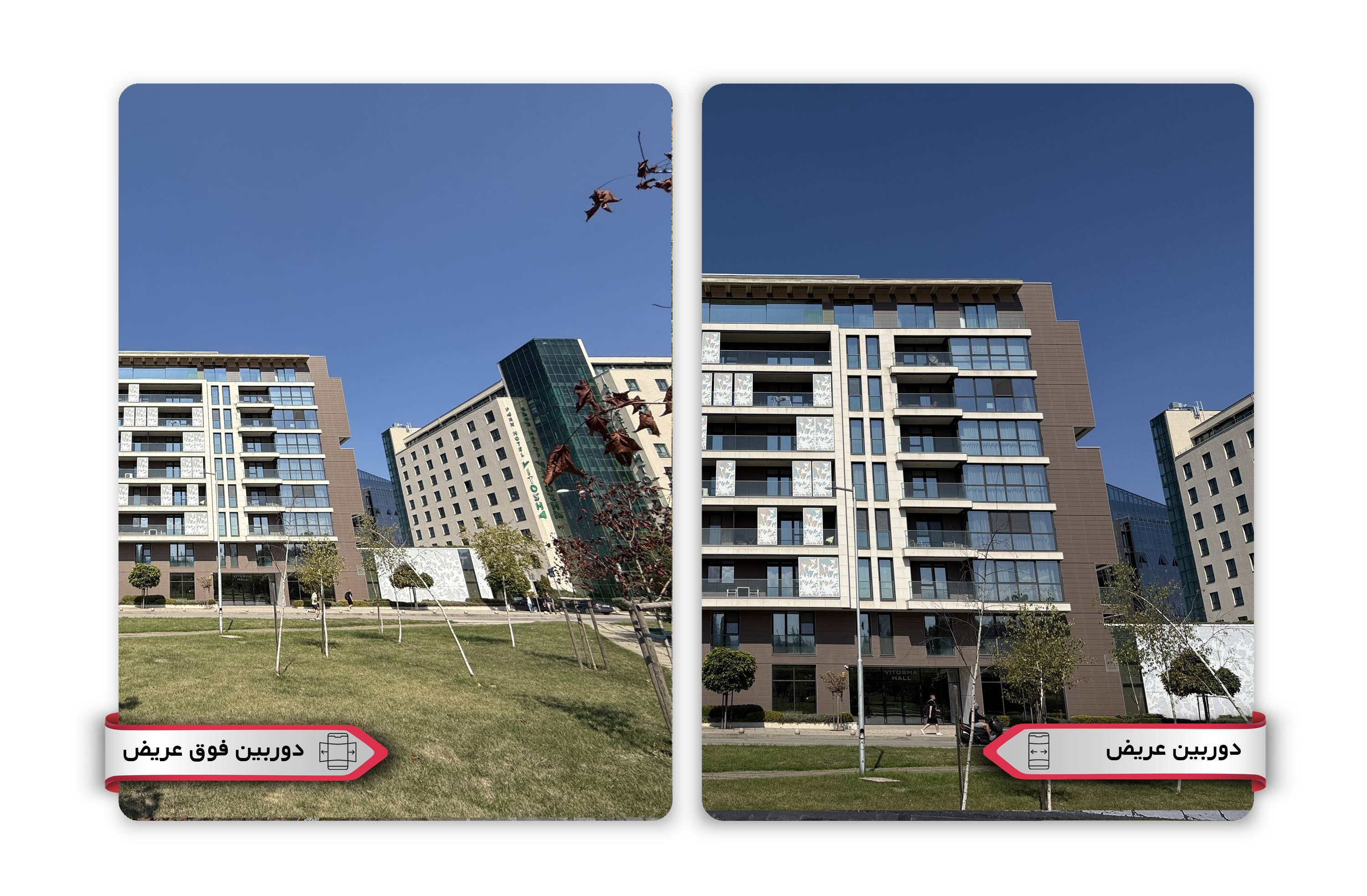 دوربین فوق عریض (اولتراواید) امسال با یک سنسور ۴۸ مگاپیکسلی جدید، ارتقای بزرگی یافته است. این دوربین جدید نیز مانند دوربین اصلی (عریض)، در برخی بخشها جزئیات را با بافتی کمی خشن ثبت میکند، اما آسمان در تصاویر آن بسیار تمیز و یکدست به نظر میرسد. هماهنگی رنگی این دوربین با سایر دوربینها به خوبی تنظیم شده است، هرچند که رنگها در آن نیز چندان پر جنب و جوش نیستند. استفاده از حالت ۴۸ مگاپیکسلی در این دوربین، برخلاف دوربین اصلی، کاربرد محدودی دارد و بهبود چشمگیری در جزئیات ایجاد نمیکند.